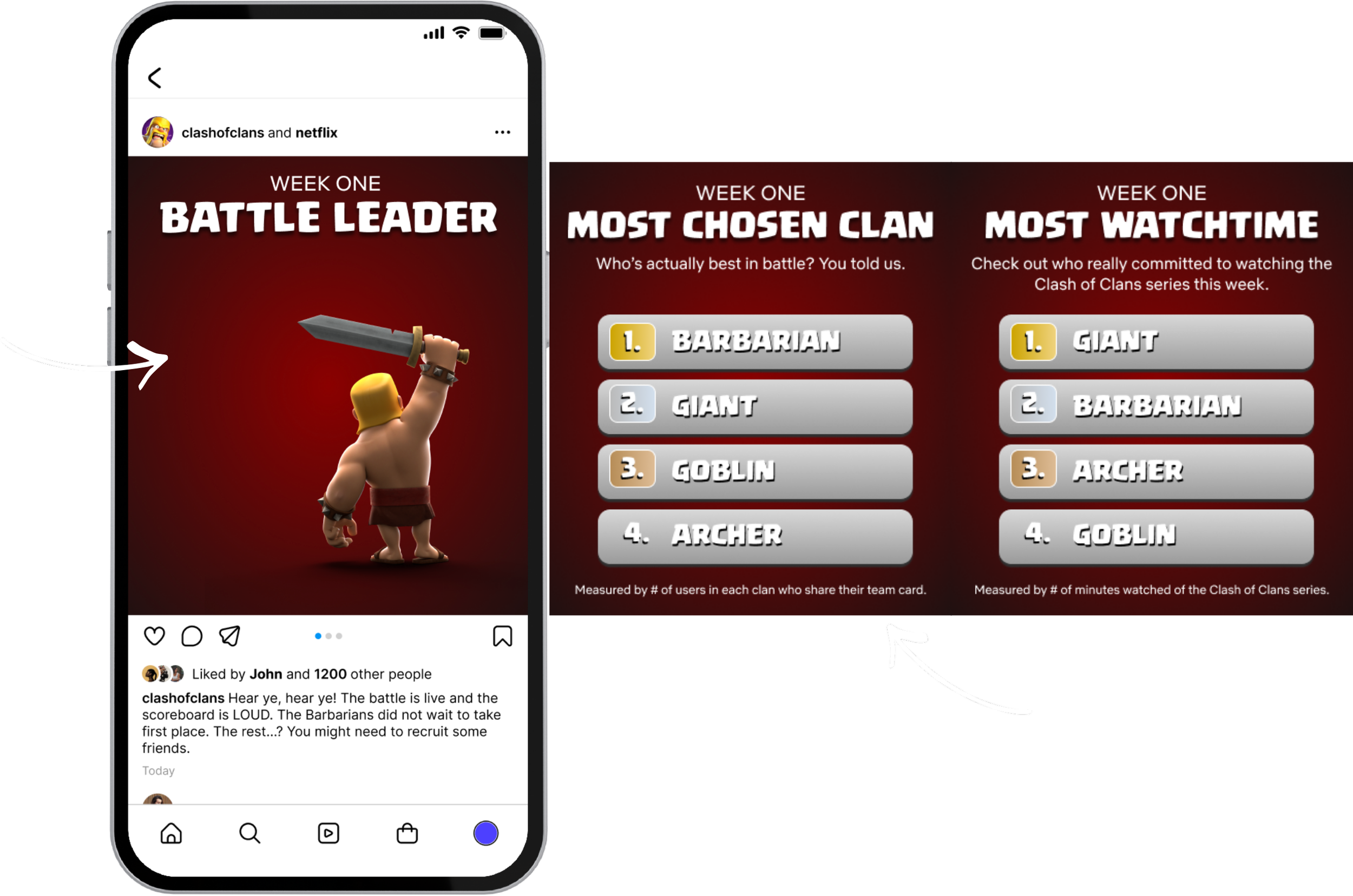 Use real analytics such as # of users who chose that clan, watch time, # of social engagements, or # of UGC posts from each clan to create rankings.